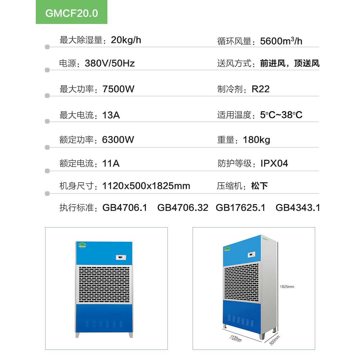 3.除湿风机采用成套离心风机,使空气快速循环,风量大低噪音,机身采用高强度钣