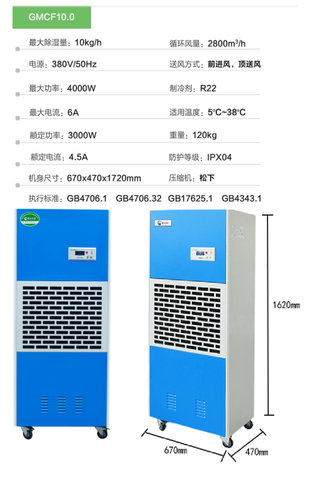 3.除湿风机采用成套离心风机,使空气快速循环,风量大低噪音,机身采用高强度钣